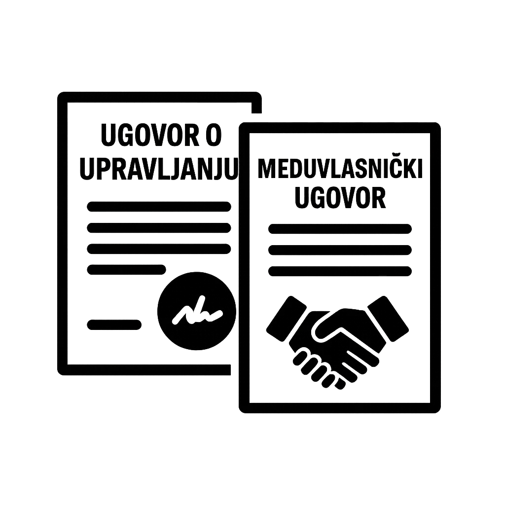 | Međuvlasnički ugovor | Uređuje prava i obveze, način odlučivanja, udjele u pričuvi i odnose među suvlasnicima. |